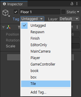 타일 태그를 추가하고, 바닥에 타일 태그를 적용한다.